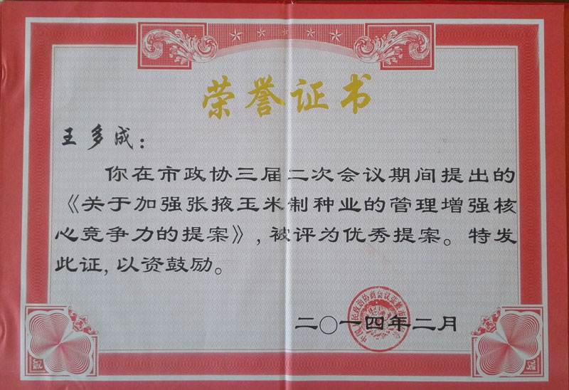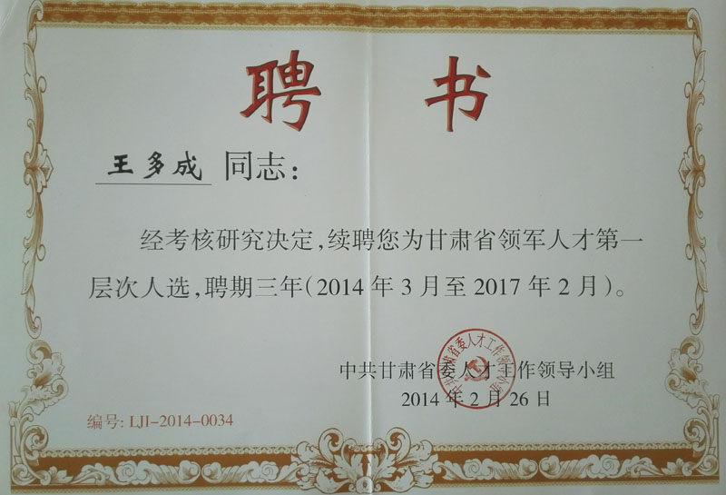 2011榮獲張掖市科技特派員證書(shū)